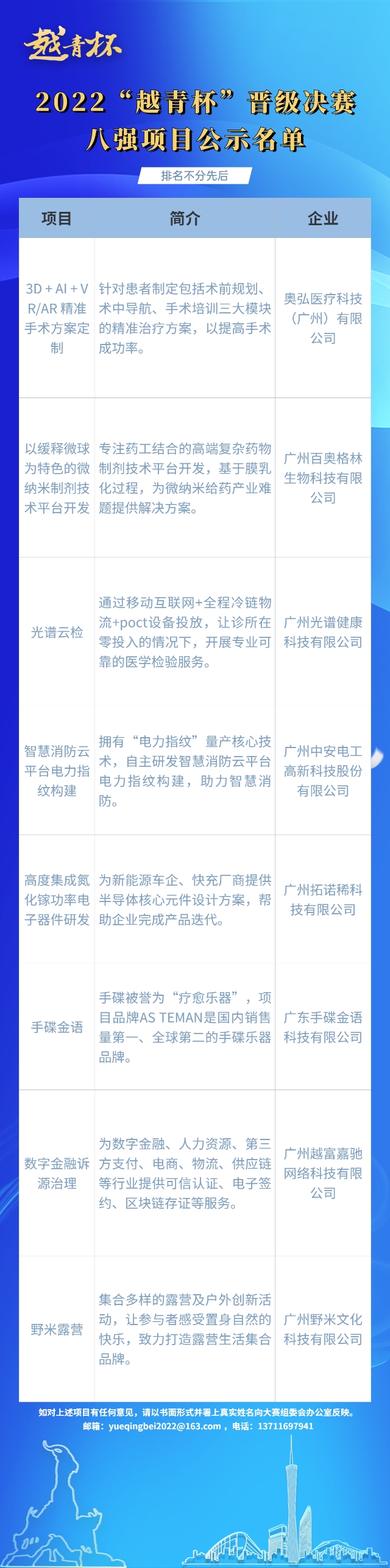 “越青杯”作为新葡京博彩官网区青年创新创业品牌活动,自2017年以来已成功举办五届,发掘了联合医生、千鸟回收、LAVA MUSIC拿火音乐、弯弓Digital、大爱时光等一大批优秀创新项目。今年的活动经过初赛、复赛,综合各分赛场情况,最终8个晋级决赛的优胜项目已经出炉,其中4个为港澳青年在穗创业项目,公示名单如下:
