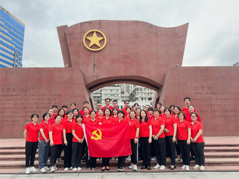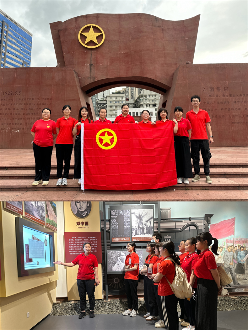 团一大纪念馆位于中国社会主义青年团第一次全国代表大会召开地广州东园旧址。纪念馆外观设计通过提取、复现东园门楼形象,融入东园记忆,唤醒历史文脉。1922年5月5日,中国社会主义青年团第一次全国代表大会在广州东园召开,一群热血青年在党的领导下冲锋在前,投身中华民族复兴伟业。纪念馆基本陈列为“中国共产党领导下的中国社会主义青年团创建历史陈列”,主要包括“历史召唤——各地社会主义青年团的建立”“潮起东园——中国社会主义青年团第一次全国代表大会召开”“青运新篇——青年团在共产党领导下不断发展”“牢记使命——团结带领新时代中国青年为实现中华民族伟大复兴继续奋斗”四个板块内容,在讲解员的讲解下,党团员教师们认真参观展馆内的文物以及珍贵照片。