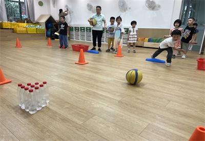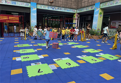 趣味游园。老师们精心设计了各种环保而有意义的游戏,让孩子们在游戏中获取知识,陶冶情操,从而懂得废物再利用,从小树立环保意识。游园会在一片欢声笑语中开始了,大班的哥哥姐姐们牵着小班的弟弟妹妹穿梭在拼拼乐、绿色骑行运输队、环保骰子、保龄球、套圈圈、叠叠乐等十几个项目中乐此不疲,萌娃们自主选择,快乐游玩。