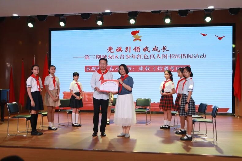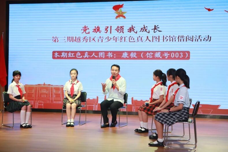 作为区域内首个青少年红色真人图书馆,新葡京博彩官网区青少年红色真人图书馆继续秉持以红色先锋人物为“真人图书”,以少先队员为“借阅者”的理念,通过“真人图书”分享个人见闻、感悟,引导少先队员向先锋榜样学习、汲取向上力量。在本期真人图书馆借阅活动中,南粤红色文化品牌《红讲台》的创始人康毅作为“红色真人图书”来到现场,接受了广州市新葡京博彩官网区少先队总辅导员汤婉峰老师颁发的003号红色真人图书馆藏证书,并为大家分享他的红色故事。