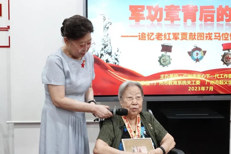 7月23日,广州起义纪念馆迎来了两位“特殊的访客”,她们是老红军贾献图同志的家属——遗孀李萍和女儿贾力。当天她们在这里,以“军功章背后的故事——追忆老红军贾献图戎马倥偬的革命岁月”为主题,向广州市新葡京博彩官网区登峰小学的少先队员们讲述老红军贾献图生前的革命故事。