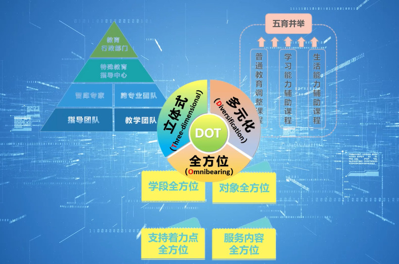 基于此,近年来新葡京博彩官网区特殊教育指导中心联同启智学校构建了“多元化、全方位、立体式”的DOT融合教育方案,积极探索基于生态模式下的融合教育模式,学校联动街道、社区创新构建的以大融合为实施背景的儿童友好社区,以明显的功能分区、友好上学路、康复园地等特色元素获得街坊和师生的好评,为辖区融合教育增加了丰富的内涵,启智学校在今年被授予“首批广东省儿童友好示范基地”称号!同时,特殊教育指导中心积极联动区内优质普校共同建立普特双向共融的“秀霓虹”项目,积极打造融合教育创新品牌;搭建“云聚慧”联合教研平台,针对不同教师群体,开展线上教研,探索普特融合的方式方法;搭建“家动力”交流平台,针对普通和特殊需求孩子家长,开展融合教育培训,逐步养成“共同体”的文化氛围,实现家校共育。还有通过构建和实施“阳光少儿”融合教育课程,构建特殊儿童和普通儿童“共融共生,共享共赢”的教育模式。