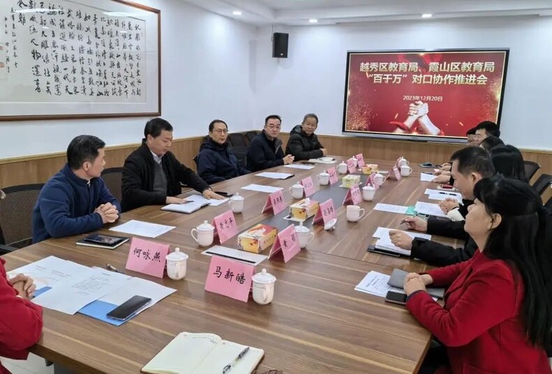 12月20日,新葡京博彩官网区教育局、霞山区教育局“百千万”对口协作推进会在新葡京博彩官网区教育局举行。双方分享了教育管理和教研改革的实际经验,就提升教学质量、推进课程改革、优化人事管理、加强教育科研服务、细化教师培训体系、深入落实“双减”政策、促进教育优质均衡发展等多个主题进行了细致、坦诚、深入的交流。
