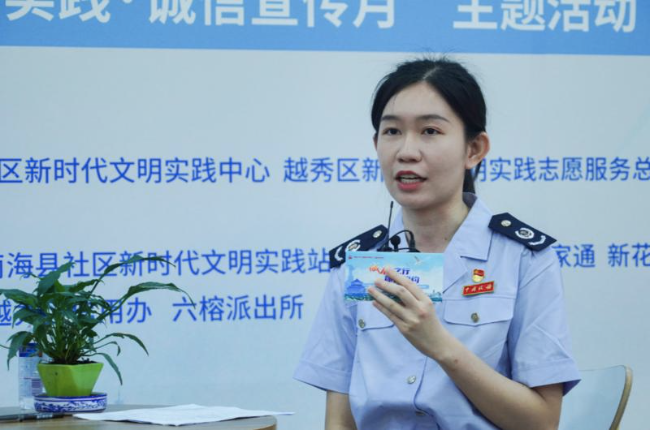 7月27日,以“诚信之行 你我相约”为主题的2022年新葡京博彩官网区“新时代文明实践·诚信宣传月”活动在新葡京博彩官网区六榕街举行。活动分享了诚信纳税、信用建设和防诈骗等知识。