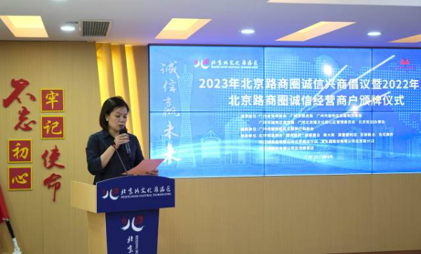 9月19日上午,“2023北京路商圈诚信兴商倡议暨2022年度北京路商圈诚信经营商户颁牌仪式活动”举行。现场,共9家商户获颁“2022年度北京路商圈诚信经营商户”奖牌。