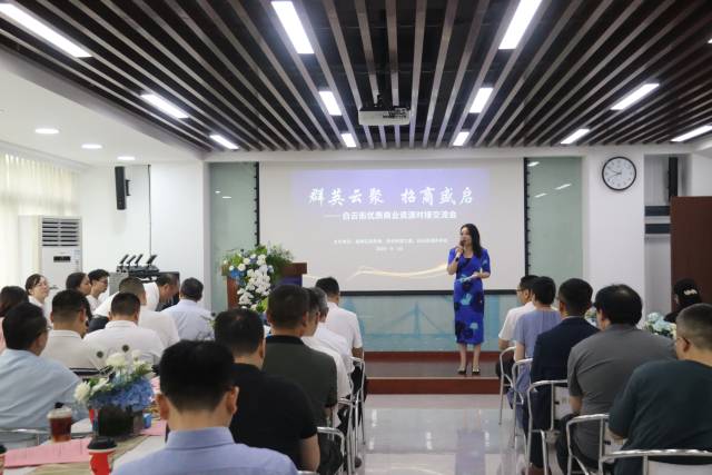 9月10日上午在白云街营商发展厅联合举办以“群英云聚·招商盛启”为主题的优质商业资源对接交流会。香港贸易发展局、澳门招商投资促进局、广州大麦AI研究院、慧晶达科技、百胜餐饮等企事业单位负责人以及白云街辖内商务楼宇物业负责人应邀出席。