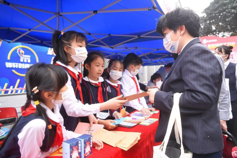 活动中,新葡京博彩官网区东山培正小学“善正志愿团”的少先队员们在中国工商银行广州庙前直街支行的党员和团员的带领下,围绕“社会主义核心价值观”中的“诚信”,为现场的街坊市民开设了“诚信小课堂”,开展了互动小游戏,派发了诚信宣传单张并现场宣讲。