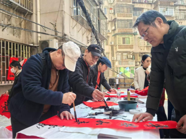 来自广东省人口促进会、广东省朗诵协会和广州新葡京博彩官网康养产业投资有限公司的演出团队精心筹划公益演出,为军休干部送上了葫芦丝、非洲鼓、红歌联唱、舞蹈、诗歌朗诵等精彩纷呈的节目。活动现场设置了党建、消防、反诈等有奖知识抢答赛,以富有趣味性和互动性的游戏环节增强吸引力,帮助军休干部和居民进一步了解党史文化、消防知识和反诈知识,强化文化自信,提高安全意识。晖春书法家挥毫泼墨,为军休干部和社区居民写七言春联、送新春福字。“春风浩荡辞旧岁,朝霞绚烂迎新年”、“花开富贵添百福,竹报平安纳千祥”每一副春联和福字送出的不仅是吉祥寓意,更是美好的新春祝福,浓厚的军休情谊。现场一片欢声笑语,年味十足。