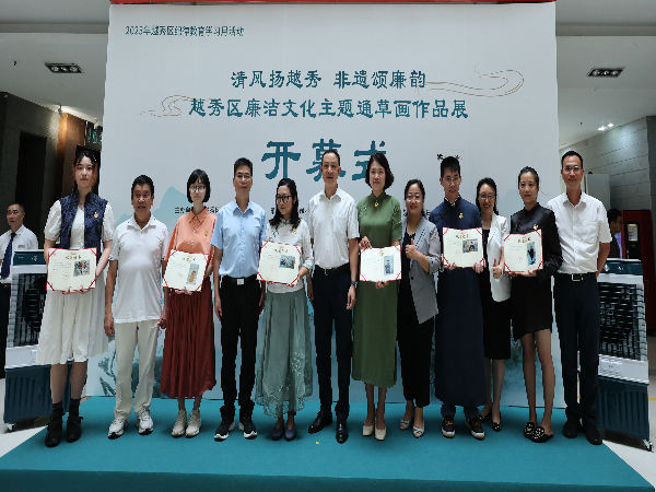 通草画,十八世纪兴起于广州,被誉为“广州明信片”外销西方,是广州作为海上丝绸之路上繁华港口的真实见证,也是广州非物质文化遗产。作为绘画材质,通草纸不惧光照、虫噬,历经日晒水泡,依然保持洁白光亮,一如历代先贤们历经磨难依然保持廉洁风骨。以“非遗+廉洁文化”的特色形式,在质感丰富的通草纸上描绘栩栩如生的古代清廉贤士,以明亮绚丽的色彩生动再现了千百年前历代先贤们的质朴形象和清风傲骨,让我们深切感受到了非遗文化的魅力和廉洁文化的激励作用。