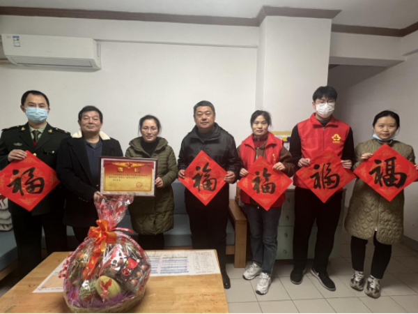 来自区退役军人事务局、区武装部、区三级退役军人服务体系的工作人员,来到立功现役军人家中慰问送喜报,和其家人亲切交谈,送上春节慰问品和美好的祝福。通过送喜报的方式,让家属倍感温暖与光荣,营造了拥军优属,关心支持国防建设的浓厚氛围。