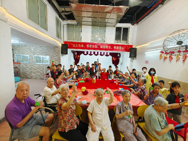 辖区内少年儿童积极参与社区志愿服务,人民街特组建了红领巾志愿服务队,这次也是组队后第一次活动,吸引了25名队员报名参与。活动中,队员们和养老院的公公婆婆,在社区站社工姐姐的带领下,一起玩互动游戏,利用彩纸折粽子,吃水果、粽子,现场气氛其乐融融。