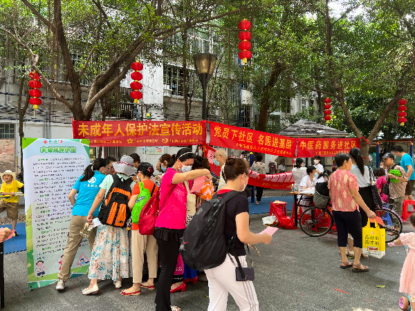 文艺汇演结束后,现场的“我为群众办实事”志愿服务集市正式开始。辖内机团单位、热心志愿者为居民提供垃圾分类、消防安全、防诈骗知识、未成年人保护宣传等服务,就垃圾分类小知识、电动车规范使用、网络诈骗技巧和应对方式、未成年人保护法等内容进行详细讲解,用身边的鲜活事例将理论政策转化为通俗易懂的“大白话”,让居民理解得更加透彻。