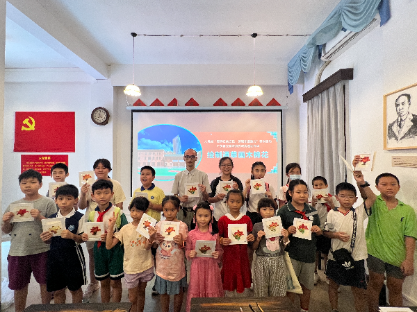 活动第二站来到人民街“家门口的红色学堂”——广东省立宣讲员养成所遗址。在讲解员的带领下,同学们围绕“南粤曙光”主题展厅,了解到“广东共产党早期组织的诞生”“广东省立宣讲员养成所的创立”等历史,感悟革命先辈的理想信仰。随后,在养成所的复原课室里,街道组织开展了“通草画红棉”非遗体验活动,以通草画的形式,带领同学们手绘英雄花“木棉”,在体验非遗乐趣的过程中传承英雄精神。