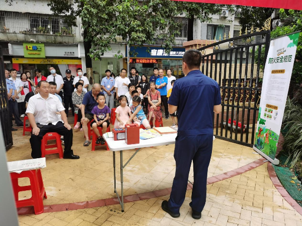 郭警官结合假期常见的安全事故,详细地向小朋友和家长们普及了日常防火、防电及防溺水等方面的基础消防知识,以及简易实用的逃生自救技能。在各类消防器材的介绍环节结束后,孩子们纷纷自告奋勇,争取上台参加模拟灭火演练,现场氛围十分活跃。活动现场还设置消防安全知识宣传展架和游园小摊位,吸引了广大居民群众围观学习。