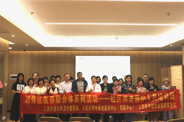 近日,人民街道公共卫生委员会联合人民街综合养老服务中心(颐康中心)、广州老年开放大学人民街学校在颐康中心二楼开展新葡京博彩官网区医养联合体系列活动——社区养老照护人员培训班。此活动得到中华慈善总会长期照护专业委员会、汇丰银行(中国)有限公司的大力支持。