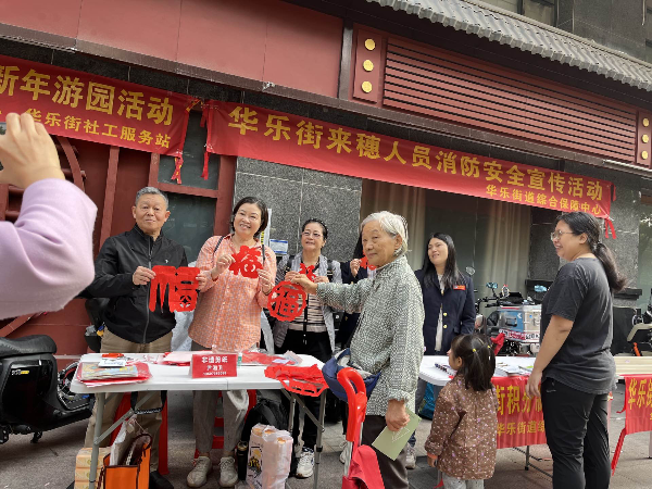 为切实做好 2024 年春节关爱来穗人员工作,让广大来穗人员度过一个安全、愉快、祥和的新春佳节,在街道办事处的大力支持下,街道综合保障中心联合麓苑社区党委、华乐街社工服务站举行来穗人员迎新春游园活动。活动采用游园集印花的方式举行,既有快乐玩的抛圈圈、夹波子、打铜锣、做好垃圾分类、剪福迎春等小游戏,还有与来穗人员紧密相关的各类办事政策咨询、宣传资料派发等活动,现场也可以兑换新年小礼品。来穗人员和街坊四邻欢聚一堂,热闹非凡,把在穗共度佳节的欢乐气氛推向了高潮。