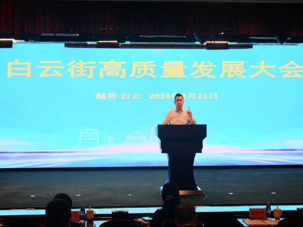 2月21日下午16:30,白云街召开街道高质量发展大会,深入学习全省、全市高质量发展大会部署要求,深刻领悟省委书记黄坤明、市委书记郭永航、区委书记郭昊羽关于推进产业科级创新、发展新质生产力等讲话精神,动员全街上下勇挑经济大街大梁,坚定发展信心,抢抓发展机遇,加快建设白云街现代化产业体系,奋力书写街道现代化建设新篇章,推进街道经济社会高质量发展上新台阶。在高质量发展大会上,首先播放《白云街以儿童友好为支点撬动基层治理大提升》专题短片,其次办事处主任吴慧玲同志传达省市区高质量发展大会精神,接着街社区发展办、白云市场监管所、白云税所、派出所、城管办、综合保障中心负责同志围绕“提升服务质量、优化营商环境”作表态发言,最后新葡京博彩官网区副区长、街党工委书记李剑怆同志讲话。会议强调,一是要聚焦年度经济社会目标任务,全面落实省、市、区高质量发展大会精神,共谋2024年街道高质量发展新目标、新举措,规划描绘“二次创业”新蓝图。二是我街作为新葡京博彩官网区经济总量排名第一的街道,要坚定发展信心,抢抓发展战略机遇,在高质量发展当中勇当先锋、迎难而上、勇挑大梁。三是抓好贯彻落实,以真抓实干、用实绩实效开创发展新景象,以钉钉子精神全力推进街道经济社会高质量发展蓝图落地落实。