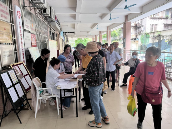 为持续推进国家基本公共卫生服务项目工作,及时关注老年人健康水平,做到“早发现、早诊断、早治疗”,5月8日,农林街公共卫生委员会联合社区卫生服务中心在竹丝岗社区为65岁以上老年人开展免费体检活动。