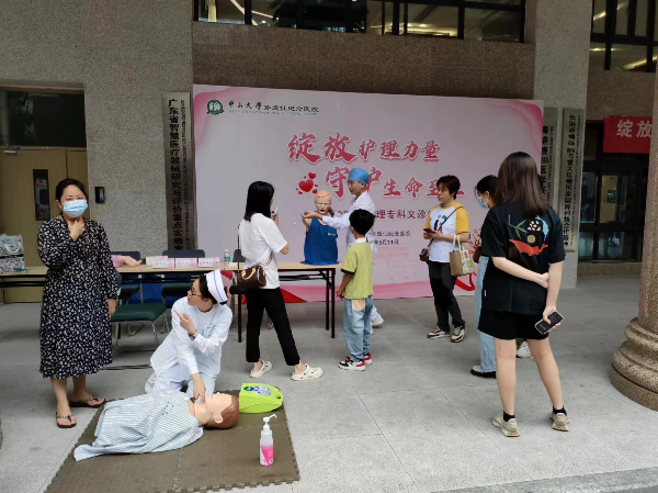 活动紧紧围绕“护佑人民健康”主题,一是开展糖尿病饮食管理健康科普讲座,由专人讲解糖尿病的饮食与营养,指导居民在日常生活中的饮食治疗、平衡膳食、食物种类等方面应注意的事项,使广大群众得到持续、正确的健康教育知识,践行健康生活方式,拥有幸福生活。二是开展心肺复苏技术和海姆立克急救的演练及培训,为让现场人员能够更加精准地掌握急救要领和注意事项,医护专家现场进行示范操作,对“模拟人”实施心脏复苏及异物误入气道抢救,接着指引群众轮流进行操作体验,增强群众对心肺复苏和海姆立克的认识,提高群众应对突发情况进行自救及互救的应急处置能力。三是开展义诊及咨询服务活动,现场有多位护理专家为广大群众解答糖尿病足护理、伤口造口护理、乳腺康复护理、营养护理、静脉治疗及导管护理等多领域护理难题,还提供免费测量血压及血糖等便民服务。