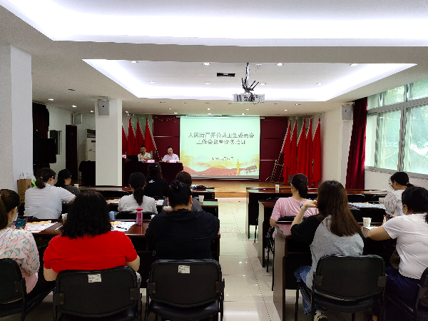 5月27日,人民街组织召开2024年上半年公共卫生委员会工作会议暨业务培训。街公共服务办、社区卫生服务中心等单位负责人,各社区居委会负责公共服务专线2的干部等共22人参加会议。