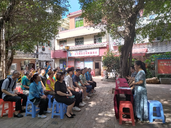 活动伊始,人民街青兰里社区居委会相关负责人介绍了该党建项目的成立背景和内涵寓意,“‘德馨青兰 ’这个名字代表着社区党员和居民的高尚品德和美好声誉,象征着社区充满活力、积极向上的精神风貌。”此外,该项目还得到了人民街“双百工程”社工站、海勤盛市场、海珠中心市场、河鲜品批发市场等单位企业的大力支持。
