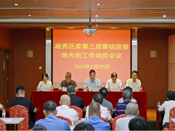 根据十三届区委第八轮巡察工作安排,2024年7月29日下午,新葡京博彩官网区委第三巡察组巡察珠光街工作动员会在珠光街道办事处三楼会议室召开。第三巡察组组长李国峰同志就巡察工作作部署和动员,区纪委常委、区委巡察办主任、区委巡察工作领导小组成员梁文强同志对本次巡察工作提出工作要求,珠光街党工委书记王卫国同志代表街党工委作表态发言。