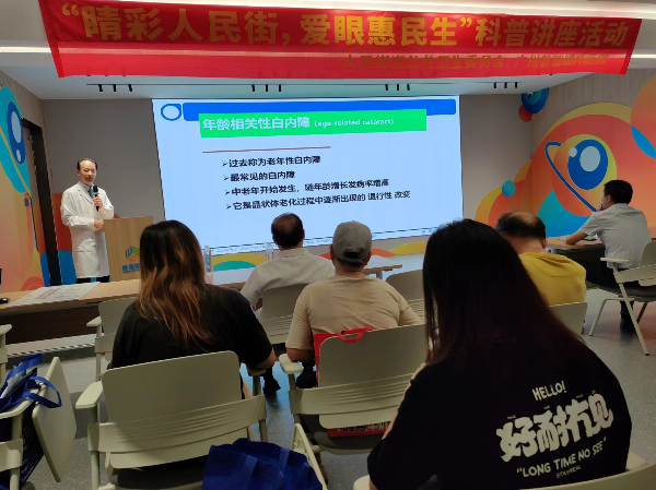 此次活动分为讲座、义诊两个部分。讲座环节,广州普瑞眼科医院沙教授以幽默风趣的语言,围绕白内障的发病原因、症状表现、诊断方法及治疗手段等方面进行了深入浅出的讲解。沙教授表示,白内障一定要早发现早治疗,不要等到完全成熟再进行手术。现场的居民聚精会神,积极与沙教授进行互动,气氛十分活跃。讲座结束后,现场还提供了义诊服务,包括视力测试,眼底检查,白内障、青光眼等常见眼病的筛查,帮助居民及时发现和治疗眼部疾病。