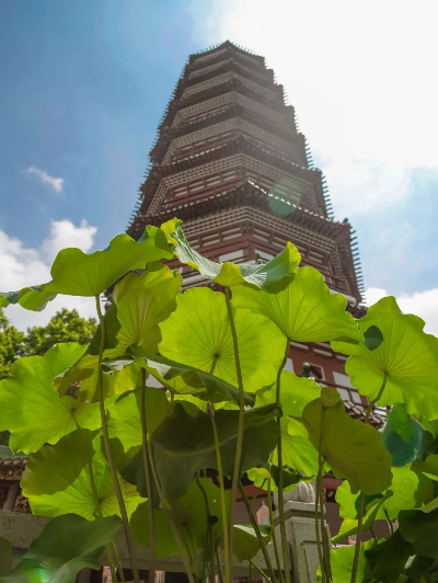 绿美莲香,游客信众,漫步徜徉,感受千年古刹的清净雅致,共享这份清凉美景。