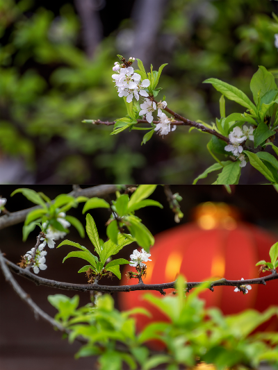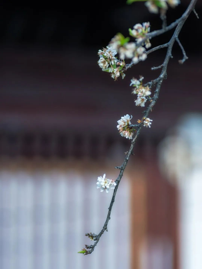 “春光潋滟好,李花暗香来”,寺内还有一棵李树,亦有春意染上枝头,雪白花枝映衬红墙青瓦,远看像刚下过一场雪。细看每一朵李花都小巧玲珑,花蕊纤细金黄,淡雅的花香扑鼻而来,令人心旷神怡。