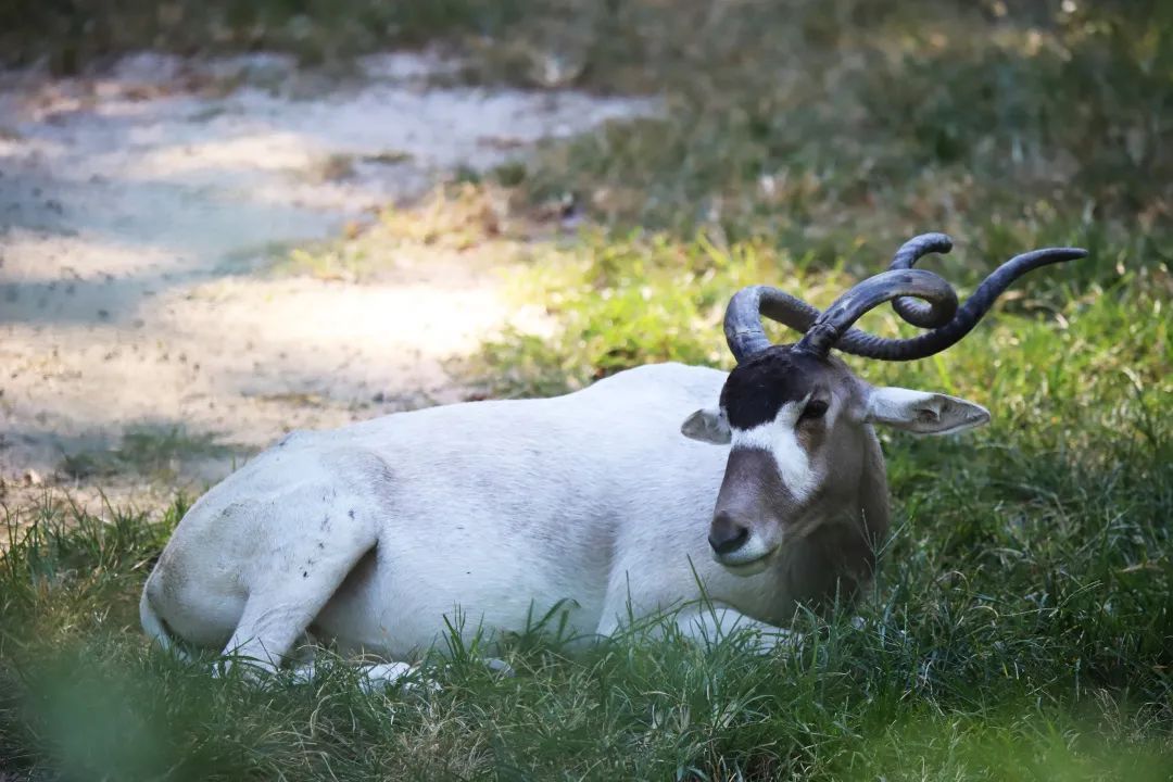 天气晴好,旋角羚来到草地上晒太阳。(来源:广州动物园)