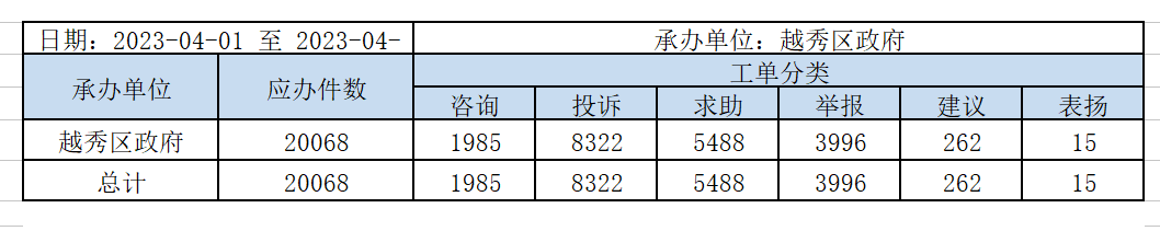 12345服务热线数据公示(2023年4月)
