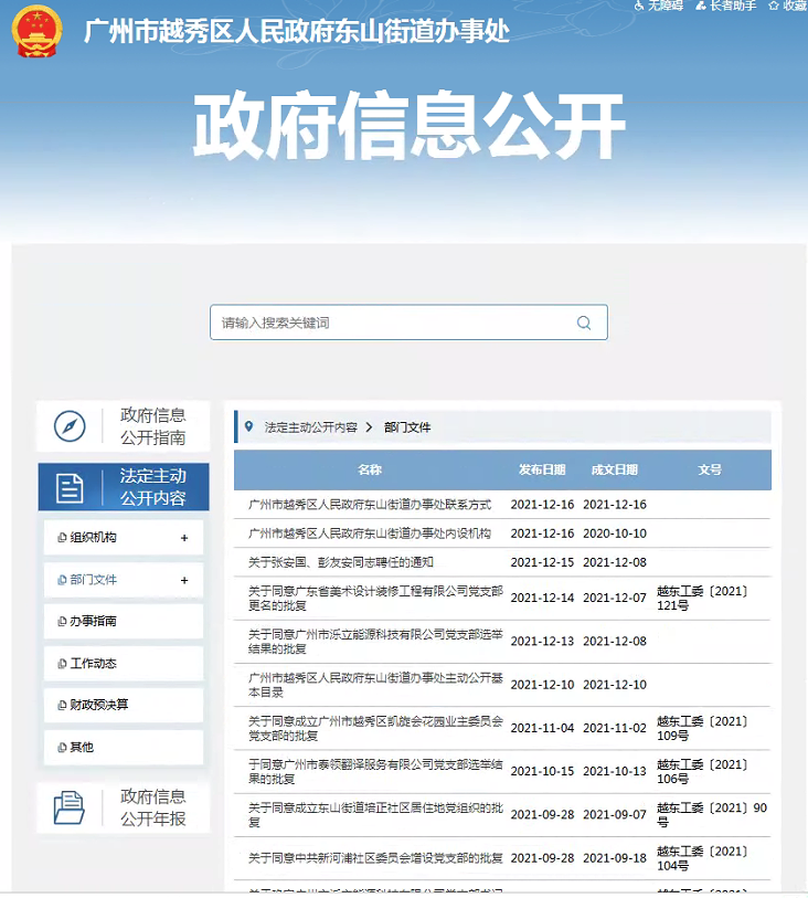新葡京博彩官网东山街道办事处2021年政府信息公开工作年度报告